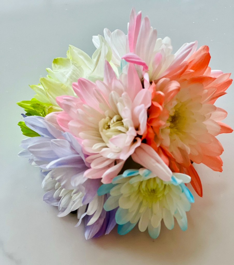 Mother’s Day 2024, I brought home multi colored daisies from the store. I was grieving my mother who was ghosting me for getting sick. 15 weeks in solitary confinement my punishment for what I now know was severe Autistic Burnout. I thought to put in a vase. But then my ADHD kicked in full creative mode and I started making daisy chains I then decided to make into individual crowns. Counting eight for each woman in my biological family who had broken my heart early and all the surrogates I tried to take their place who also only abandoned.